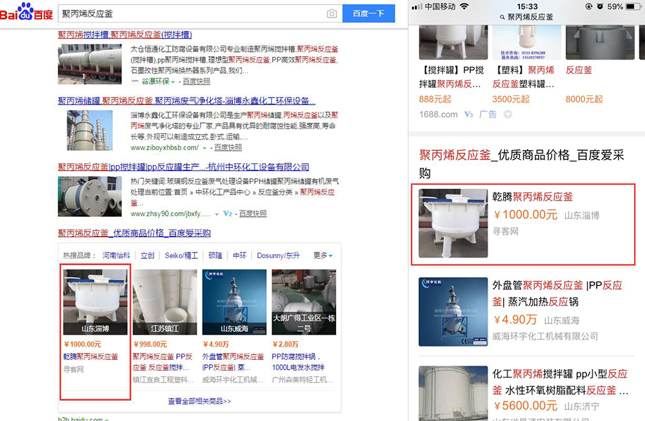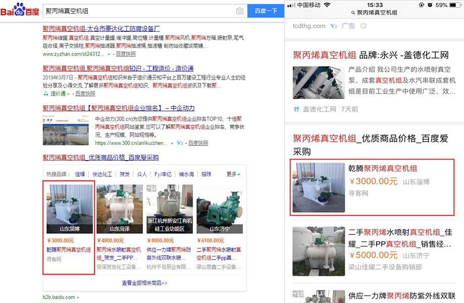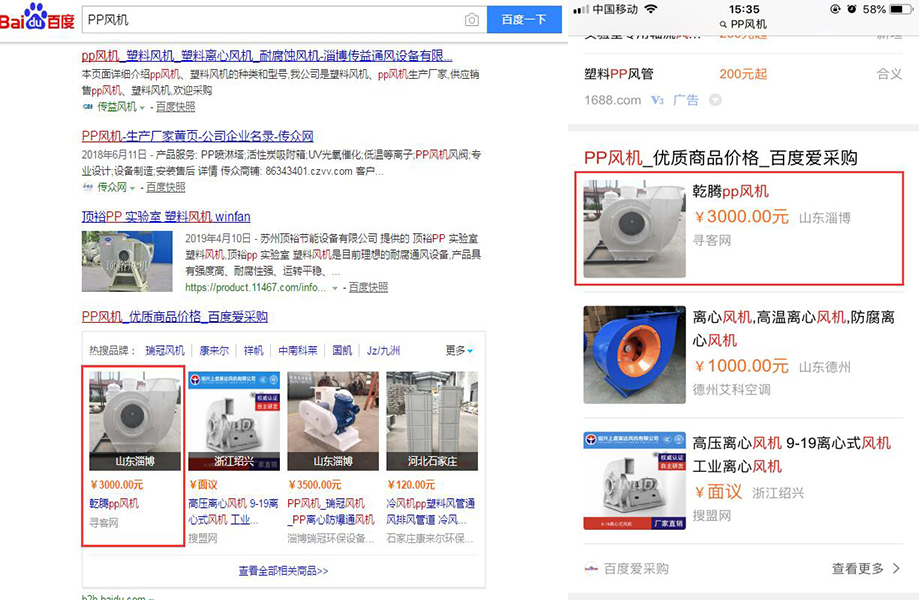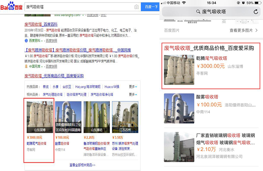 搜索點擊展示(左側為PC端搜索頁面推薦展示,右側為手機端搜索頁面推薦展示):